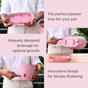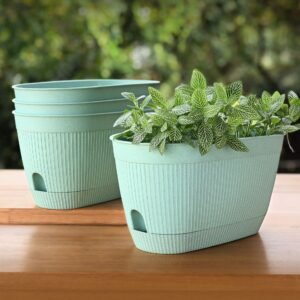 Eha Earth Friendly Eva 11.5 inch Pack of 4 | Self Watering Pots for Plants | Bamboo Based Plant Pots | UV Protected Planters for Home decor Indoor, Outdoor, Balcony & Garden Flower pots