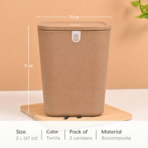 Introducing Square Canister, the most versatile & earth friendly kitchen storage container made from sustainable biocomposites. The modern design features an airtight lid that keeps your food fresh and protected from moisture, making it perfect for use for storing dry goods such as sugar, tea, coffee.