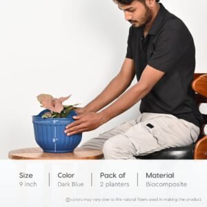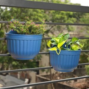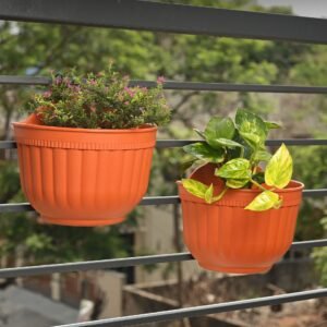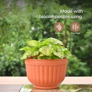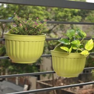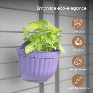 Eha Earth Friendly Metal Sling 10 inch Set of 2 Self Watering Hanging Planters for Balcony | Hanging Pots for Plants | Bamboo Based and UV Resistant | Gamla for Plants