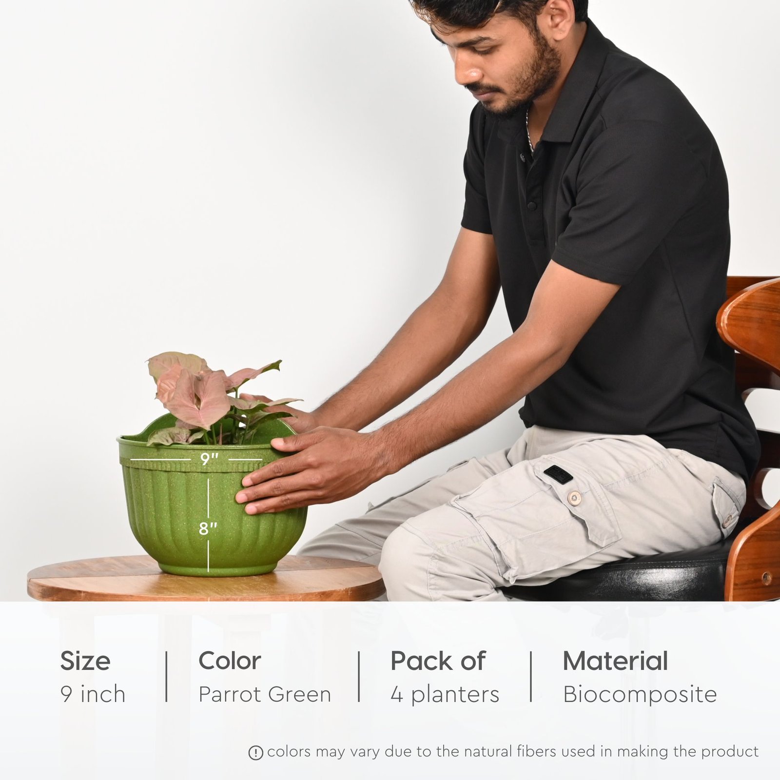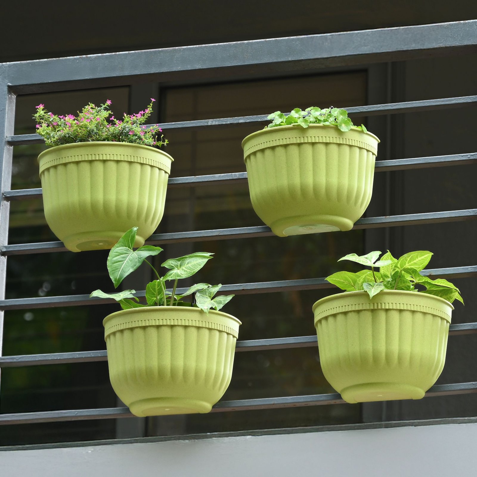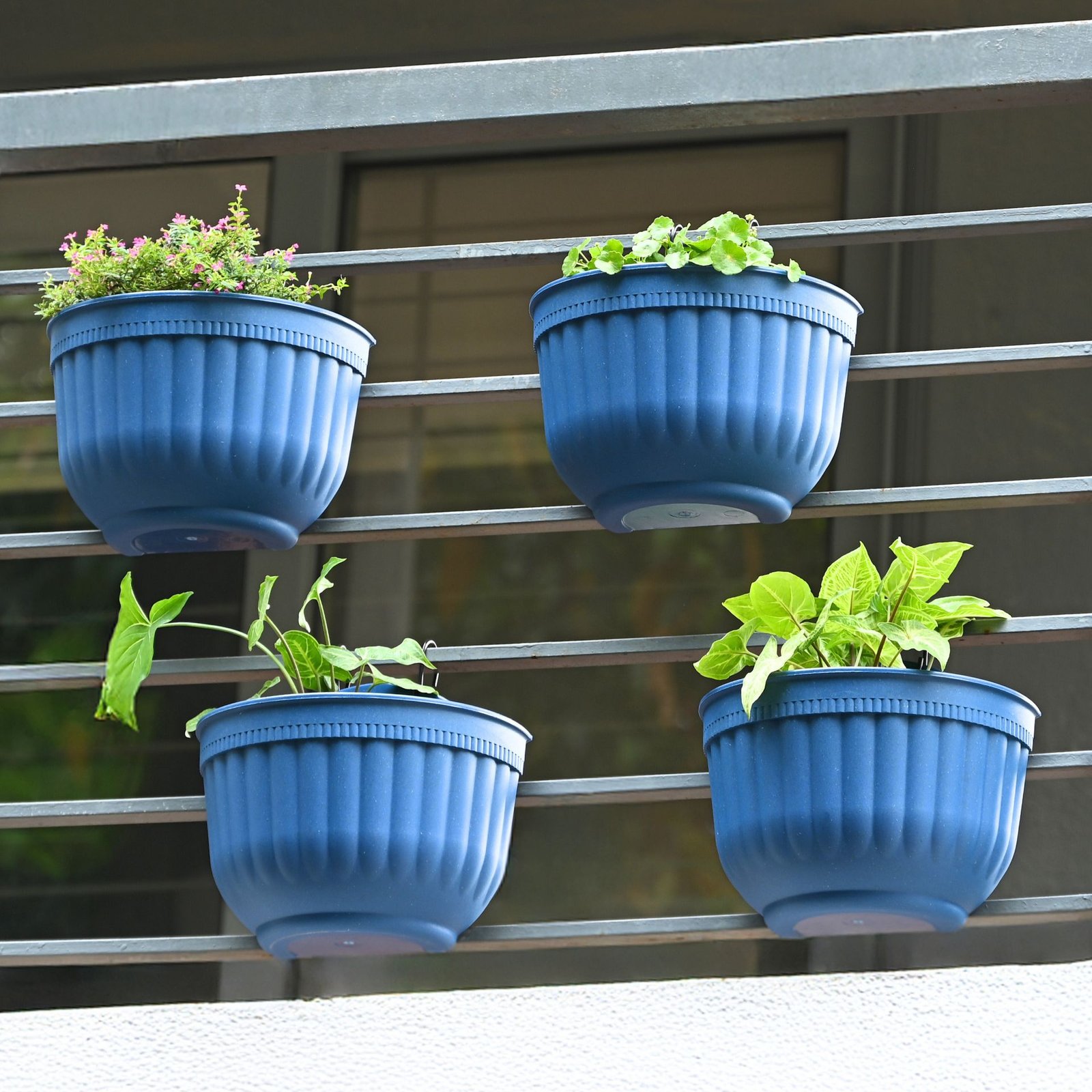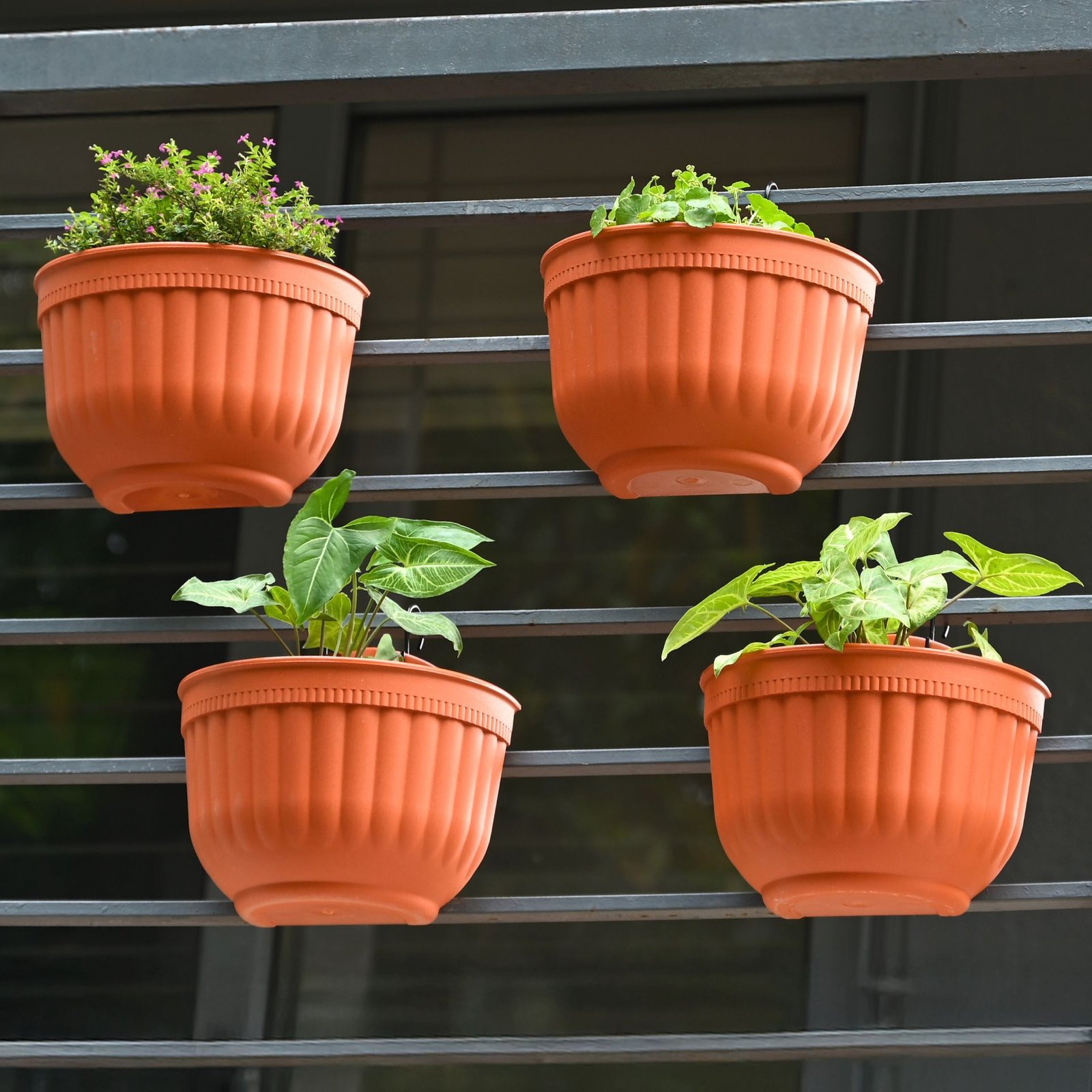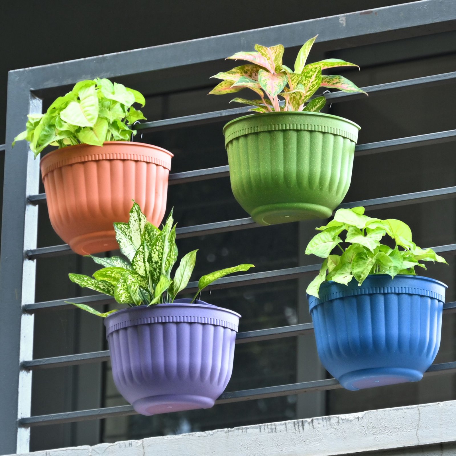 Eha Earth Friendly Metal Sling 10 inch | Set of 4 | Self Watering Hanging Planters for Balcony | Hanging Pots for Plants | Bamboo Based and UV Resistant | Gamla for Plants