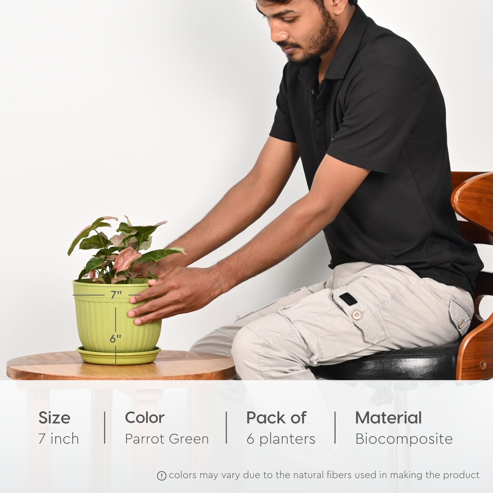 Eha Earth Friendly Petal Pot 7 inch | Pack of 6 | Pots for Plants | Bamboo Based Plant Pots | UV Protected Planters for Home Indoor, Outdoor, Balcony & Garden Flower pots