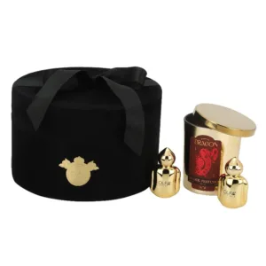 Ignite your senses with our Honey & Oud Scented Candle and Blush Bottles Set, elegantly presented in a black velvet hat box.