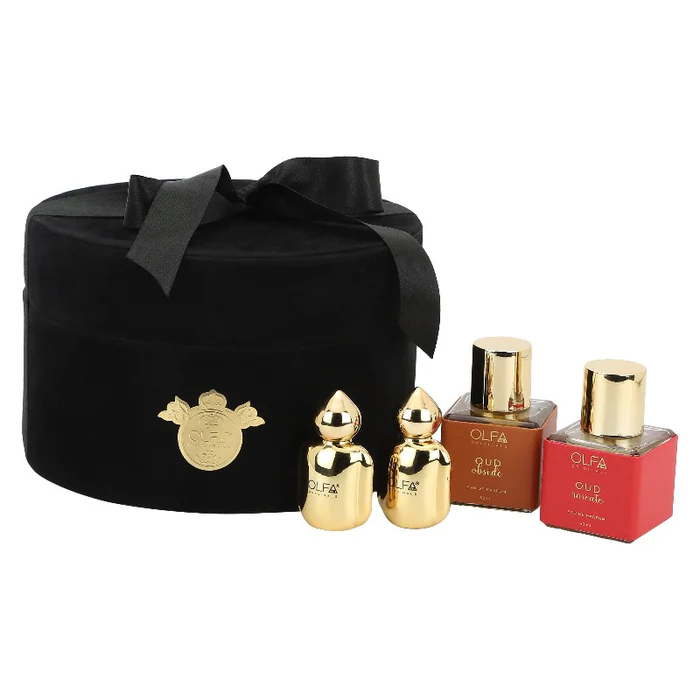 Elegantly packaged in a black velvet hat box, this set offers a luxurious and sophisticated fragrance journey.