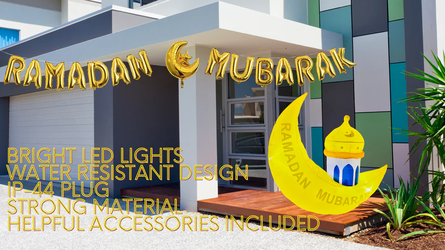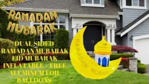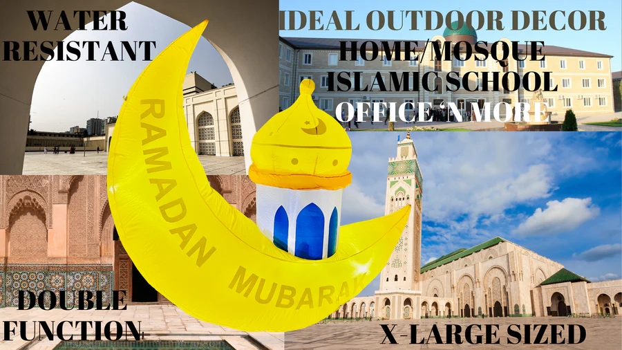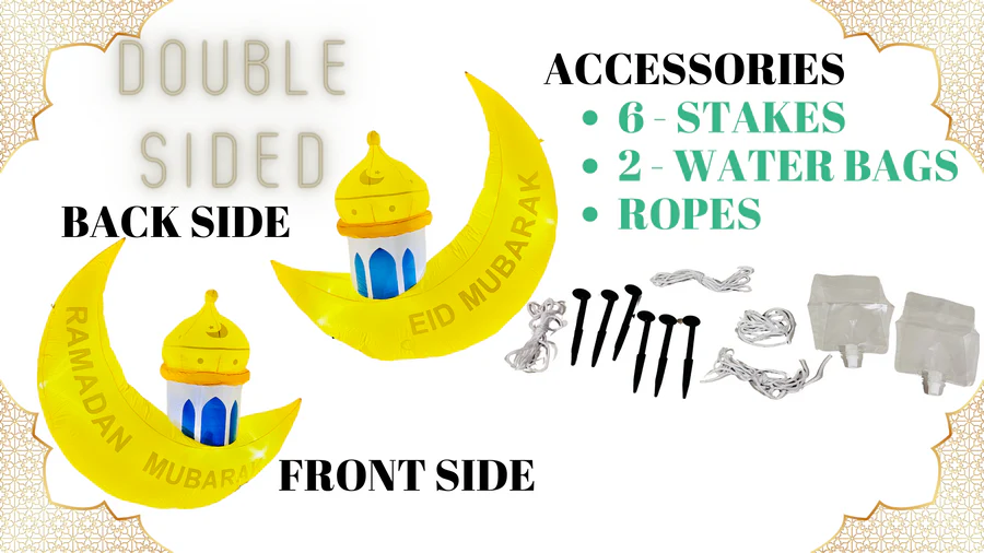 Illuminate your Ramadan this year with the beautiful inflatable décor perfect for a Ramadan welcoming. You can light up your backyard with this décor piece. The product can be a great addition for your Ramadan iftar party décor especially if the iftar party is for the kids, the décor will match the Ramadan vibe and you can use it as a photo booth for Ramadan memories year 2024 and so on. You can decorate your space with this inflatable Ramadan welcoming décor that comes with LED lights it is easy to inflate and deflate for your iftar parties, Ramadan get-togethers, Eid parties, kids iftar party etc. You can even pass this on as a gift among your friends and family on the arrival of Ramadan. It is dual sided and can be used for both Ramadan and Eid.