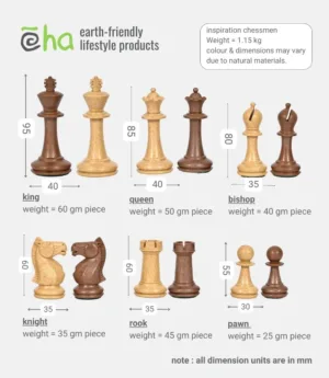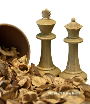 A full tournament-sized Chess set, the Beetle Inspiration Chess set features a 4.0″ King. The Chess pieces are designed as per international standards and moulded with biodegradable biocomposite material having bamboo fibers, rice husk and coffee husk. The Chess pieces are weighted with luxurious billiard cloth base pads and a beautiful finish. The colours of Chessmen and pawns are inspired and derived from natural elements – bamboo for light colour and coffee husk for dark colour. The set features a very robust design and no delicate details to chip or break during hard usage. This is unquestionably one of the most sustainable chessmen for your own use, gifting, and tournaments.