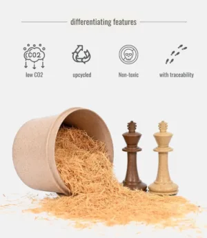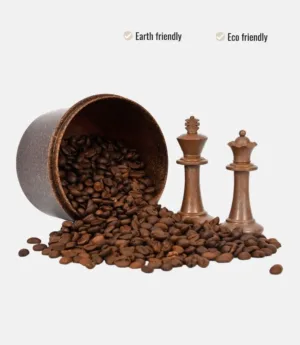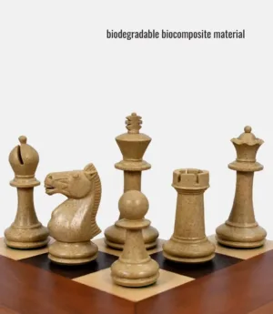 A full tournament-sized Chess set, the Beetle Inspiration Chess set features a 4.0″ King. The Chess pieces are designed as per international standards and moulded with biodegradable biocomposite material having bamboo fibers, rice husk and coffee husk. The Chess pieces are weighted with luxurious billiard cloth base pads and a beautiful finish. The colours of Chessmen and pawns are inspired and derived from natural elements – bamboo for light colour and coffee husk for dark colour. The set features a very robust design and no delicate details to chip or break during hard usage. This is unquestionably one of the most sustainable chessmen for your own use, gifting, and tournaments.