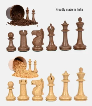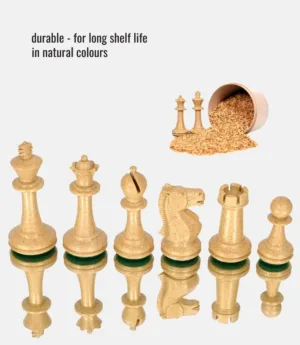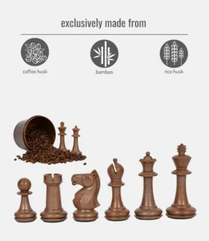 A full tournament-sized Chess set, the Beetle Inspiration Chess set features a 4.0″ King. The Chess pieces are designed as per international standards and moulded with biodegradable biocomposite material having bamboo fibers, rice husk and coffee husk. The Chess pieces are weighted with luxurious billiard cloth base pads and a beautiful finish. The colours of Chessmen and pawns are inspired and derived from natural elements – bamboo for light colour and coffee husk for dark colour. The set features a very robust design and no delicate details to chip or break during hard usage. This is unquestionably one of the most sustainable chessmen for your own use, gifting, and tournaments.