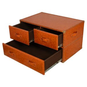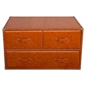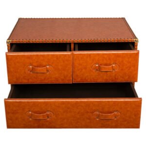Crafted from high-quality leather with a beautifully aged finish, this trunk features intricate antique detailing and sturdy metal accents. Ideal for storing blankets, clothing, or treasured items, it adds character to any room while serving as a stylish focal point. Perfect for both home décor and functionality, this trunk brings a touch of nostalgia and sophistication to your space.