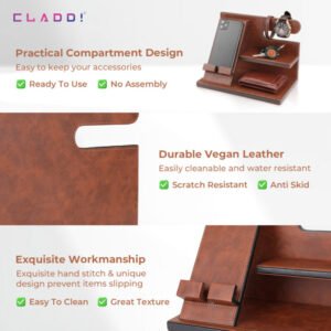 Every morning we are busy, trying to collect all those most needed daily items. We rush, and fuss and lose precious minutes.NO MORE! With this Modular Organiser Made of Solid, sturdy, beautiful wood and faux leather that makes this stand durable and gives its rich look. We want pieces that are stylish, functional and elevate your workspace when it comes to productivity and process. And that’s exactly why this new modular, transforming organiser from CLADD! is perfectly suited for our needs.