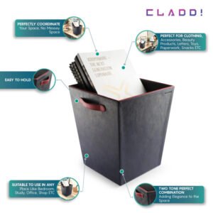 This is made with high-quality vegan faux leather that makes it stable and durable. It is suitable for the living room, office, bedroom, parlour, saloon, etc. The size and style make this work so many places throughout your home; Also great for college dorm rooms, campers, RVs, and apartments, Besides work as a trash can or wastebasket, good idea as a storage basket for laundries, toys, magazines or paper.”