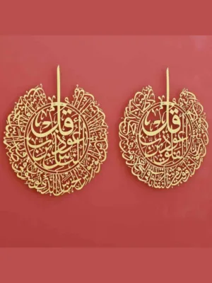 Grace your space with Surah Al-Nas and Surah Al-Falaq Islamic Metal Wall Art, a stunning set of two. Featuring intricate calligraphy, it’s perfect for Islamic home decor, Ramadan decorations, or Eid gifts. This timeless design combines spirituality and elegance, serving as a meaningful reminder of protection and faith.