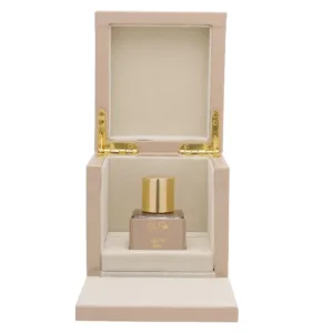 Placed ever-so elegantly in the niche of a luxurious leather box!