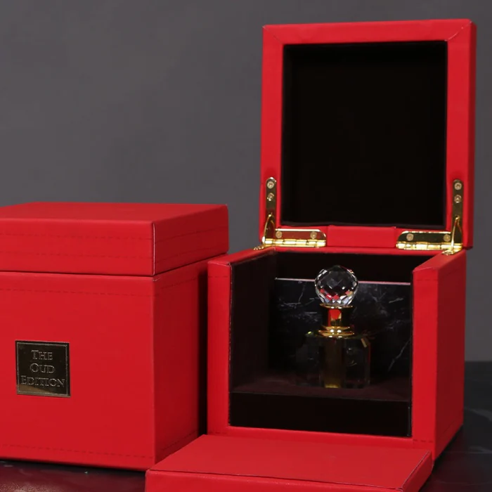 This mystic essence is poured in a classic clear-cut crystal bottle, placed ever-so elegantly in the niche of a luxurious leather box!