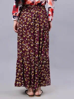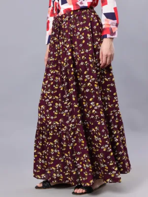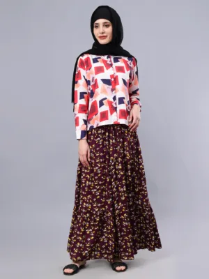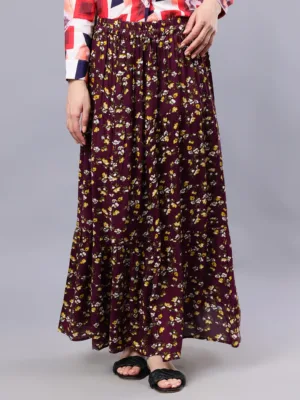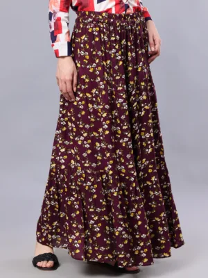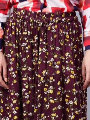 Elevate your wardrobe with our Nabia skirt in purple and yellow floral printed. Crafted from comfortable rayon fabric, its slip-on closure ensures ease. Pair effortlessly with chic hijabs, tunics, shades, and favorite shoes for a glamorous, versatile ensemble that exudes timeless sophistication.