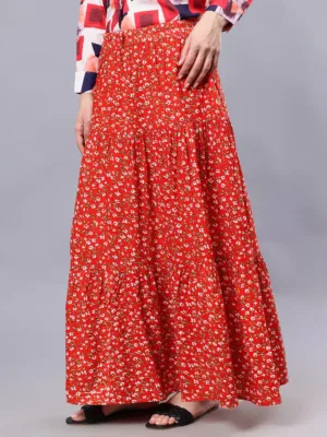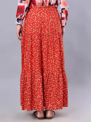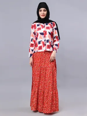 Elevate your wardrobe with our Nabia skirt in red floral printed. Crafted from comfortable rayon fabric, its slip-on closure ensures ease. Pair effortlessly with chic hijabs, tunics, shades, and favorite shoes for a glamorous, versatile ensemble that exudes timeless sophistication.