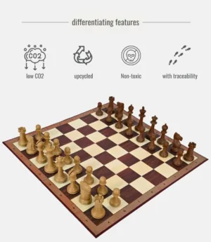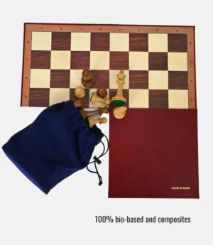 A full tournament-sized Chess set, the Turtle Scholastic Chess set features a 4.0″ King. The Chess pieces are designed as per international standards and molded with durable biocomposite material having bamboo fibers, rice husk, and coffee husk. The Chess pieces are lightweight with a simple and beautiful finish. The colors of Chessmen and pawns are inspired and derived from natural elements – bamboo for light color and coffee husk for dark color. The set features a very robust design and no delicate details to chip or break during hard usage. This is unquestionably one of the most sustainable chessmen for your use, gifting, and tournaments.