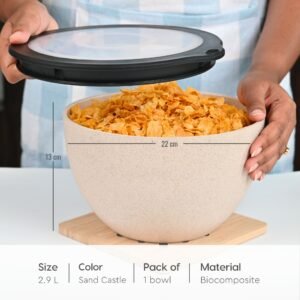 Storage Bowl with lids 2900 ml set of 1 | Earth friendly Unbreakable bowls Made with Bamboo Fibers & Rice Husk Fiber | Serving, Storage, Mixing bowl for kitchen