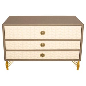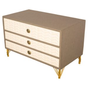 The Trio Elegance Chest of Drawers combines style and functionality in a compact design. Featuring three spacious drawers, this chest offers ample storage for clothing, accessories, or personal items while maintaining a sleek silhouette. Its modern finish and minimalist hardware make it a versatile addition to any bedroom or living space, providing both organization and a touch of sophistication to your décor.