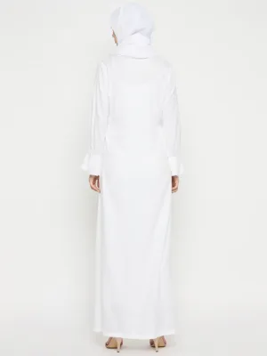 Umrah/Hajj Rayon White Abaya with Black Georgette Scarf