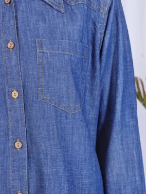 Discover the perfect blend of comfort and style with this solid denim shirt for women. Featuring a front-open design, it offers a modest and fashionable look. Ideal for everyday wear, this shirt combines the latest trends with timeless appeal. Embrace the newest fashion in a piece that’s as comfortable as it is chic.